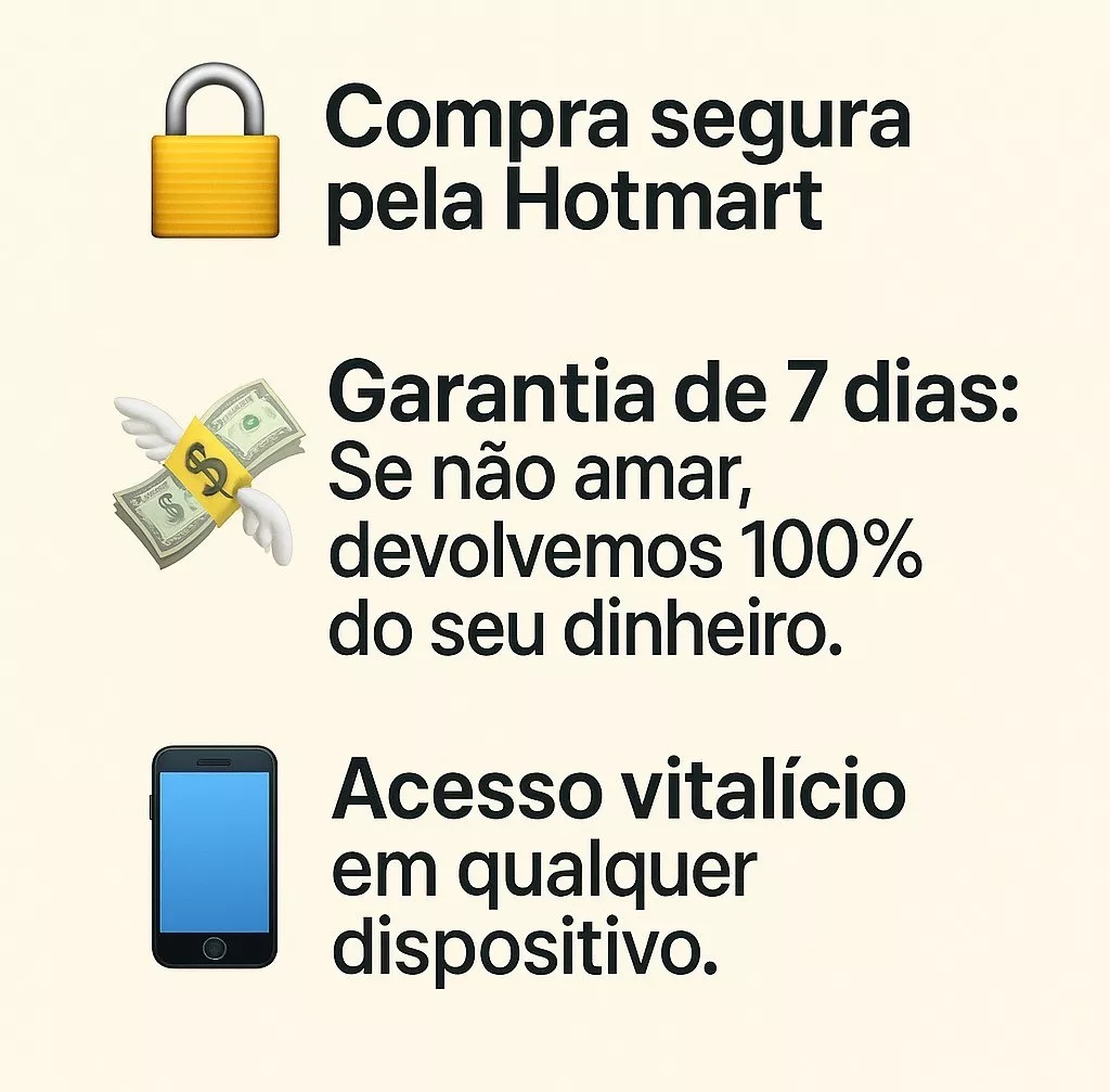 Sim! Você conta com uma garantia de 7 dias para testar o material. Se não se adaptar, pode solicitar o reembolso diretamente pela Hotmart, sem complicações.